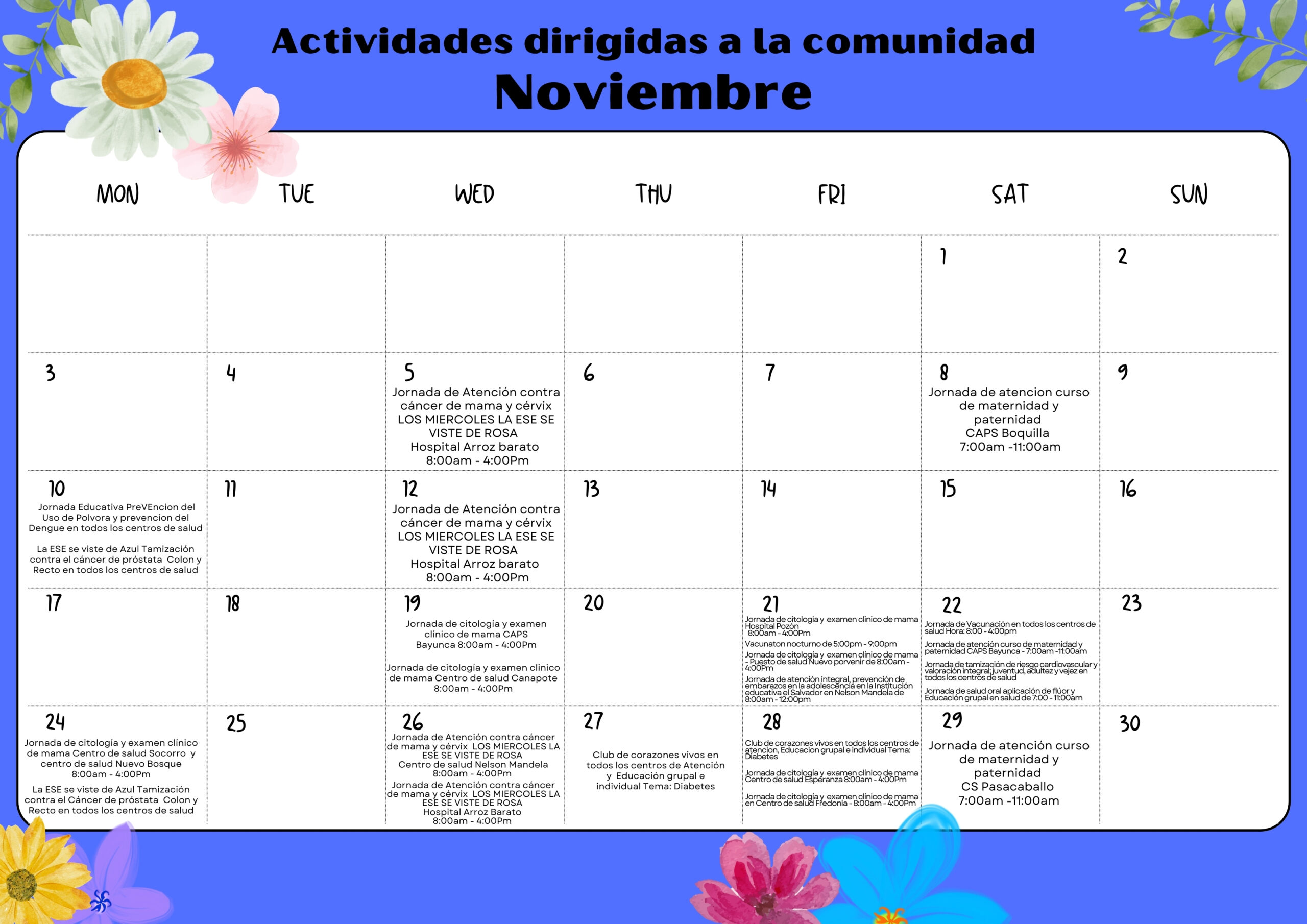 Noviembre Octubre Septiembre Agosto => Calendario curso de preparación para la maternidad y paternidad