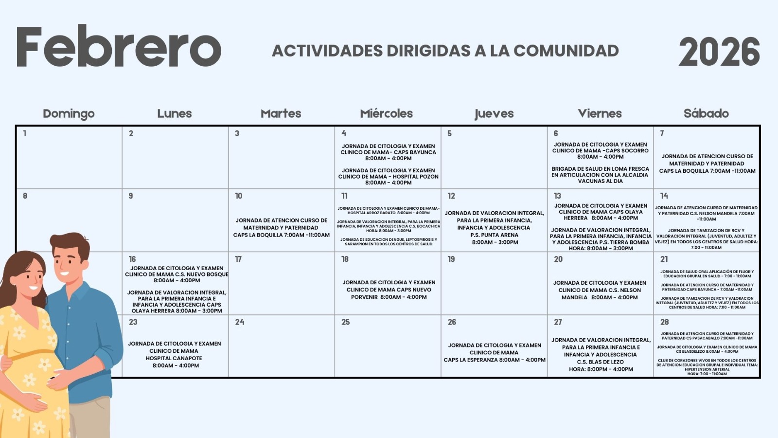 2026 2025 Febrero Enero Diciembre Noviembre Octubre Septiembre Agosto => Calendario curso de preparación para la maternidad y paternidad