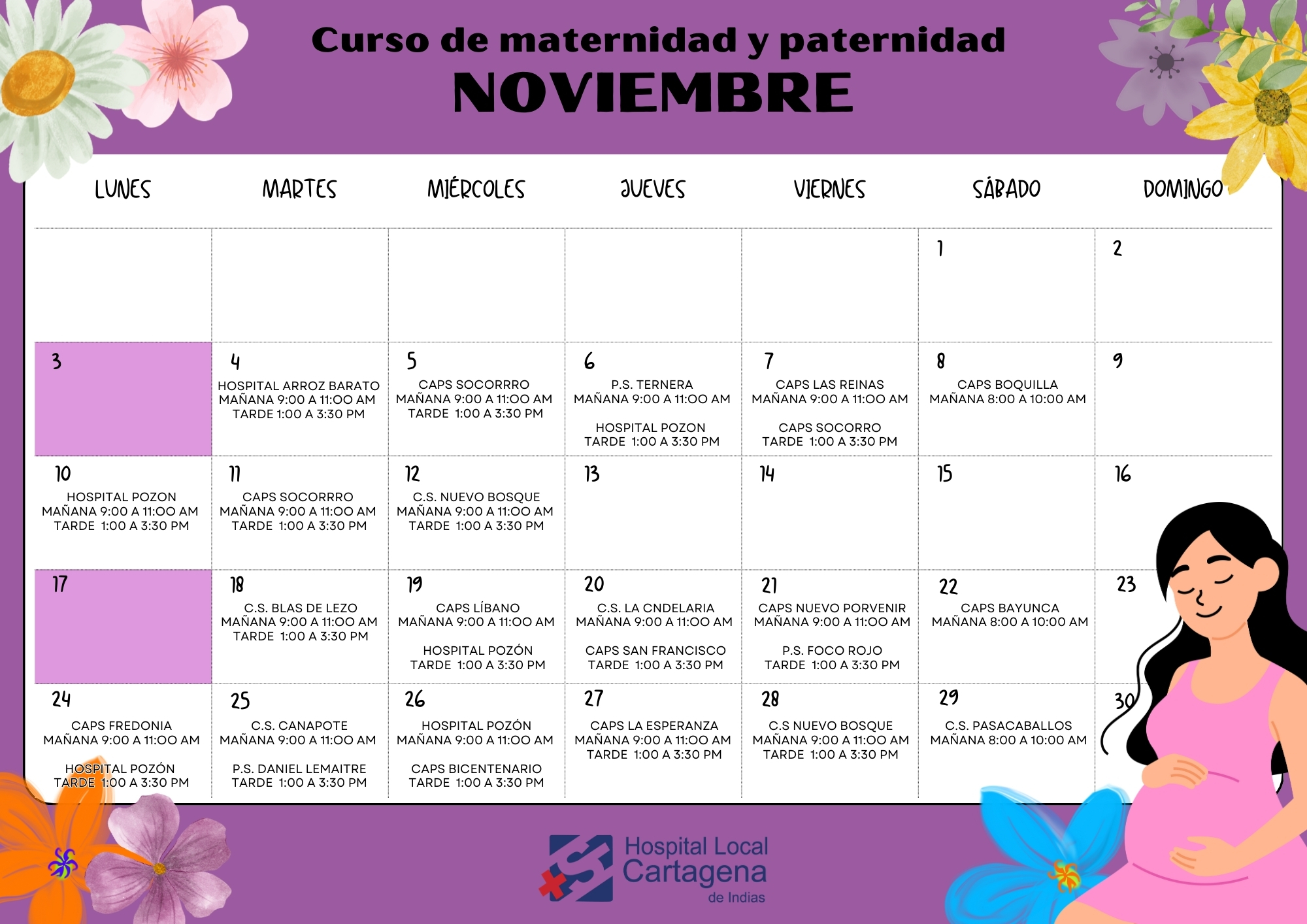 Calendario – curso de preparación para la maternidad y paternidad